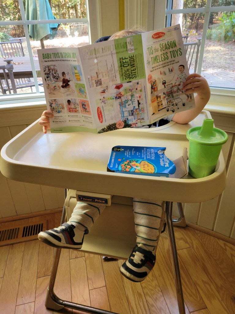 This will be his second Christmas and he knows enough to read the mail and start making a list.